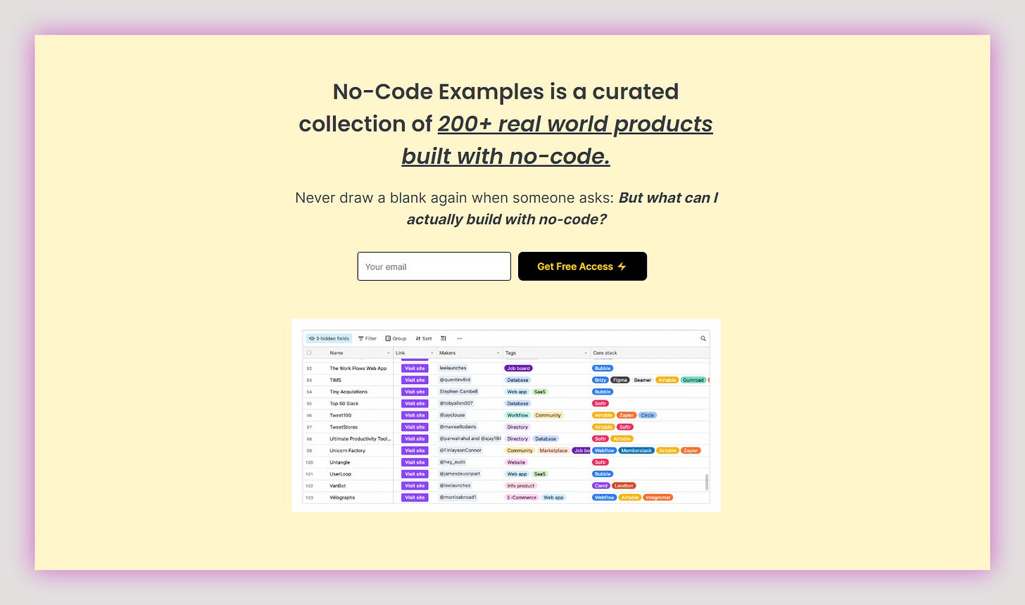 But folks, we have an answer. Max Haining made things easier. He has launched a curated collection of No-code products under a single umbrella named No-Code Examples.